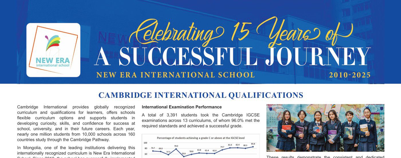 2010 онд “Шинэ үеийн боловсролын орчин, дэлхийн түвшинд суралцах боломж”-ийг бий болгох зорилгоор байгуулагдсан манай сургууль өнөөдөр Монгол Улсад Кембрижийн олон улсын хөтөлбөрийг хэрэгжүүлсэн,анхны төрийн өмчит сургууль болон оршин тогтнож, боловсролын шинэчлэлийн жишгийг тогтоосон байна.