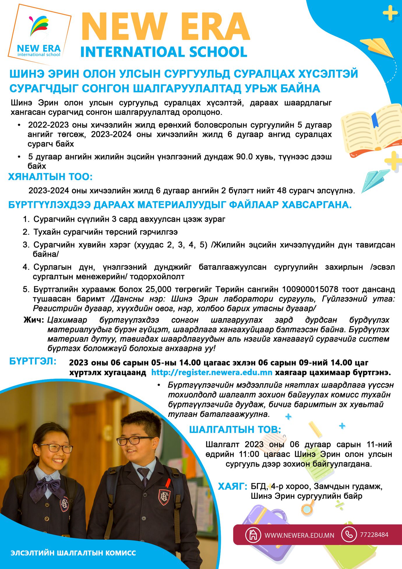 ШИНЭ ЭРИН ОЛОН УЛСЫН СУРГУУЛЬД СУРАЛЦАХ ХҮСЭЛТЭЙ СУРАГЧДЫГ СОНГОН ШАЛГАРУУЛАЛТАД УРЬЖ БАЙНА