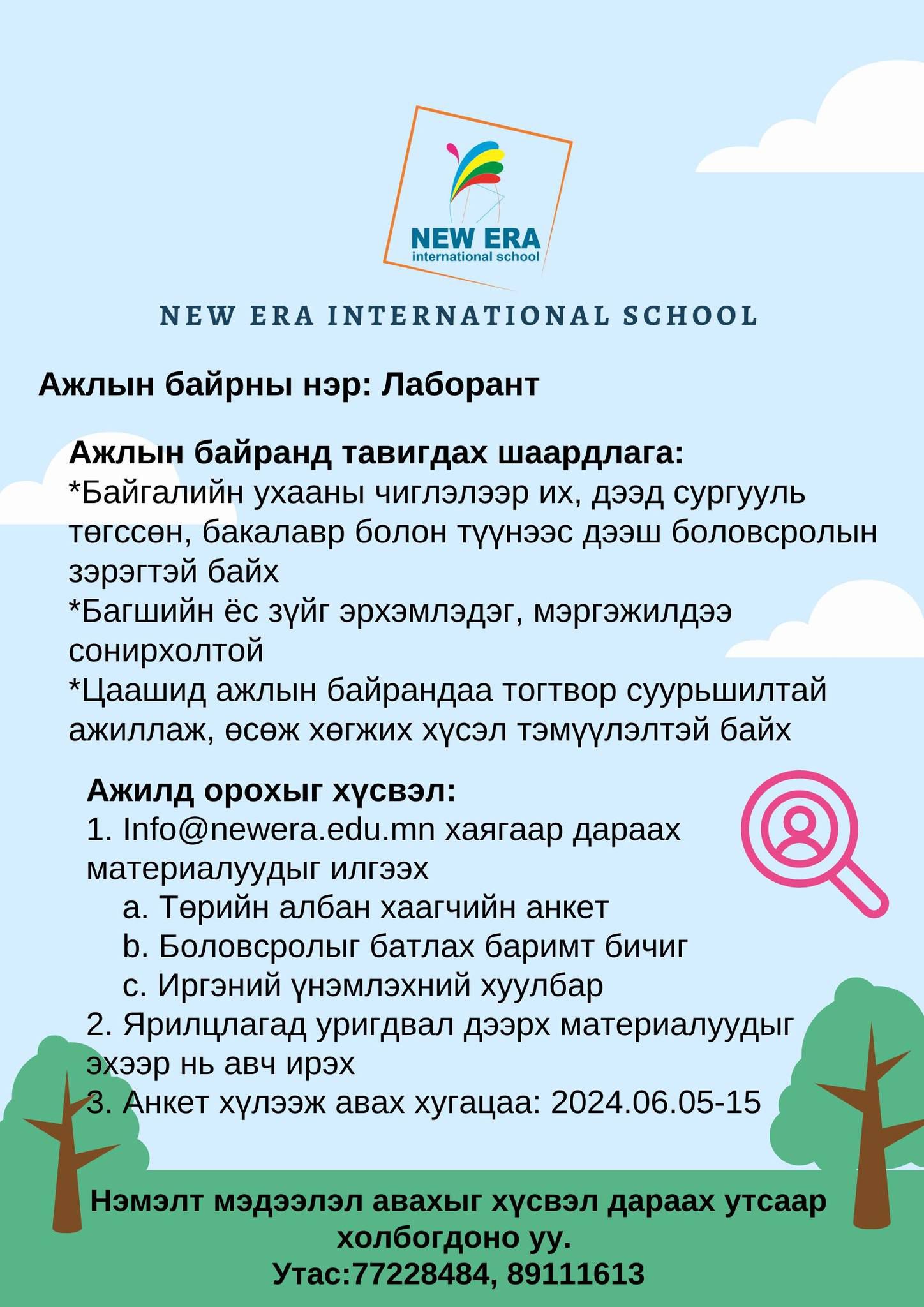 "ШИНЭ ЭРИН” олон улсын сургуульд ажиллахыг урьж байна.