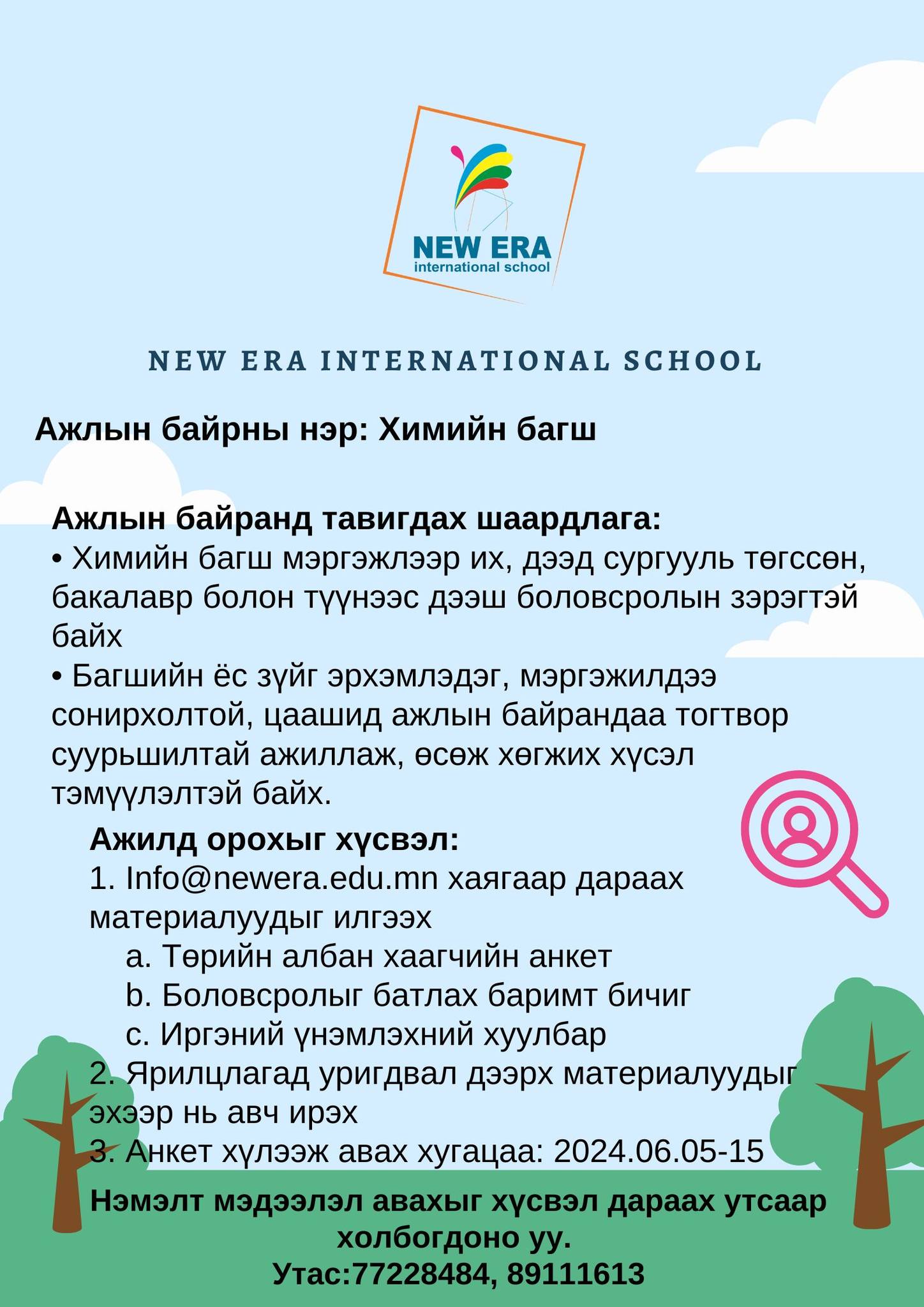 "ШИНЭ ЭРИН” олон улсын сургуульд ажиллахыг урьж байна.